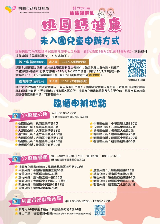 「『生生喝鮮乳-桃園鈣健康』115年2月23日開始,2足歲以上至12歲幼童可持卡至超商通路兌換1瓶鮮乳或豆漿,